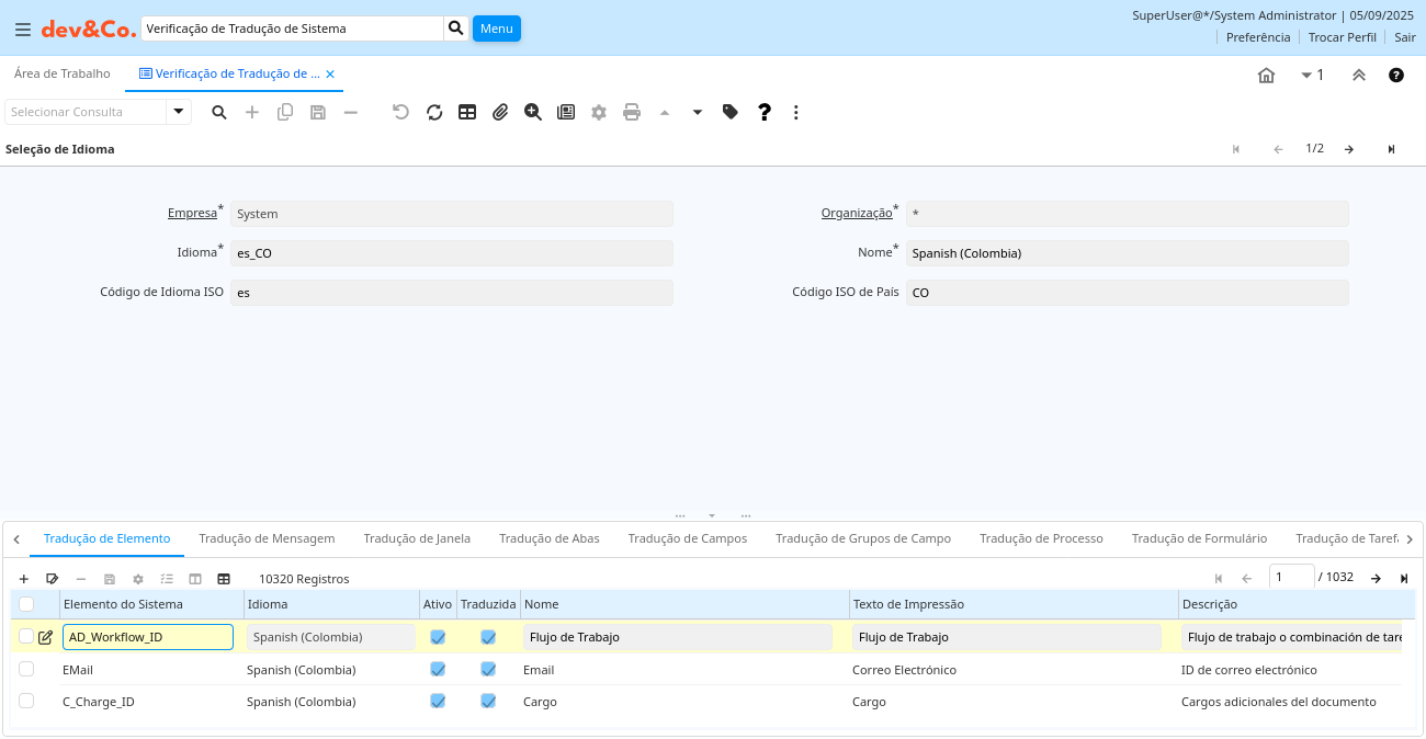 | Pré Traduzido | Elemento para filtrar e gerir o sistema de tradução | Elemento de filtro e sistema de gerenciamento de de tradução | ad_workflow_trl.cof_PreTranslated character(1) Yes-No |