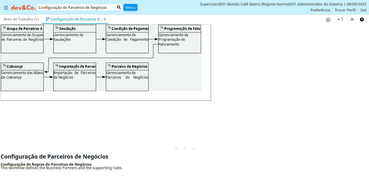 Ajuda: This workflow defines the Business Partners and the supporting rules.