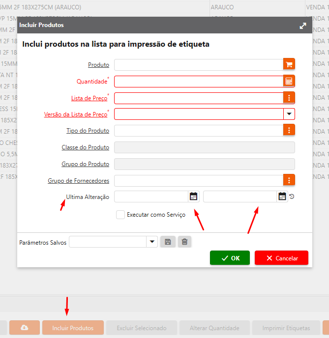 Com o novo campo de Última Alteração criado se viu necessário a inclusão desse campo no processo de Incluir Produto na Impressão de Etiquetas.