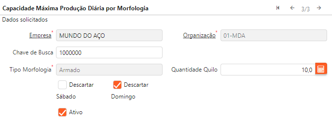 #17796 [Capacidade Máxima Produção Diária por Morfologia] - Cadastro