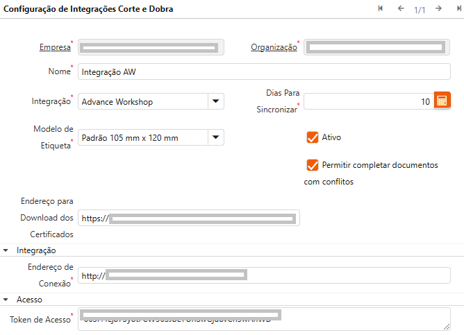 | Integração | Selecione a opção *Advance Workshop*. | Identifica a qual software essa integração pertence. |