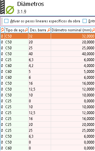 | Código do Produto | Combinação dos códigos de identificação no AW de Morfologia (Tipo de trabalho), Tipo de Aço e Bitola (Diâmetros). Exemplo: CDC5010 Se trata da Morfologia (Tipo de trabalho) "Corte e Dobra", Tipo de Aço C50 e Bitola (Diâmetro) de 10,0mm | O valor informado neste campo será utilizado na identificação da configuração do produto. Para que o AW identifique o produto corretamente, é necessário que o código seja composto pela combinação dos códigos de Morfologia (Tipos de trabalho), Tipo de Aço e Bitola (Diâmetros) |