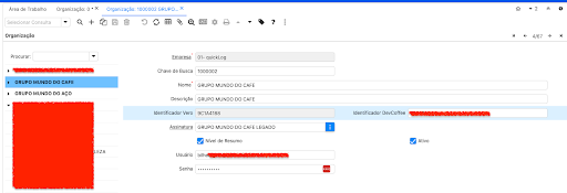 Para o correto funcionamento dos produtos de planejamento de rota, roteirização e outros que estão no devLog, também é necessário que os parâmetros de Identificador devCoffee, Usuário e Senha sejam preenchidos na Organização de Resumo configurada na plataforma.