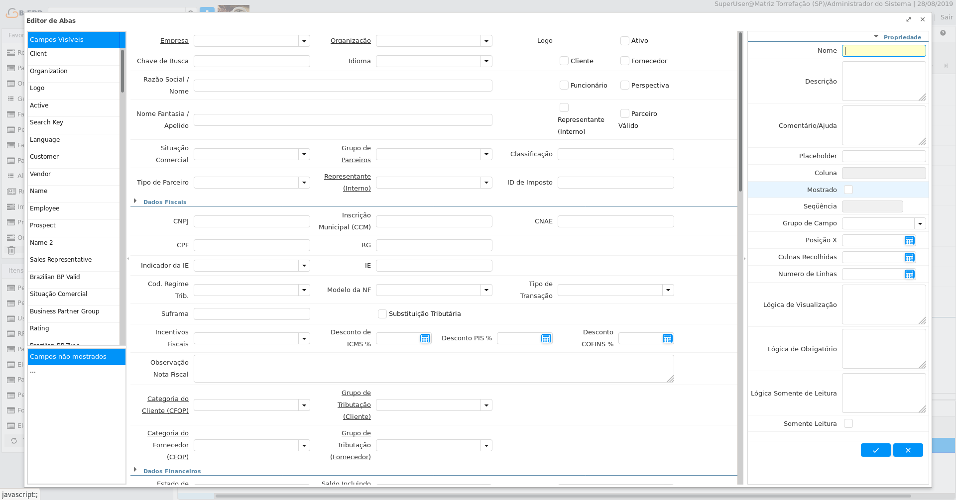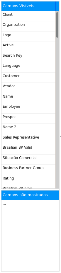 Aqui podemos visualizar quais campos estão visíveis na aba e quais estão ocultos.