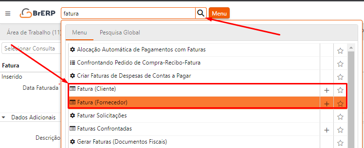 Acesse a Janela “Fatura (Cliente)” para quando for realizar um lançamento do tipo a receber, ou acesse a janela “Fatura (Fornecedor)”, para quando for realizar um lançamento do tipo a pagar.