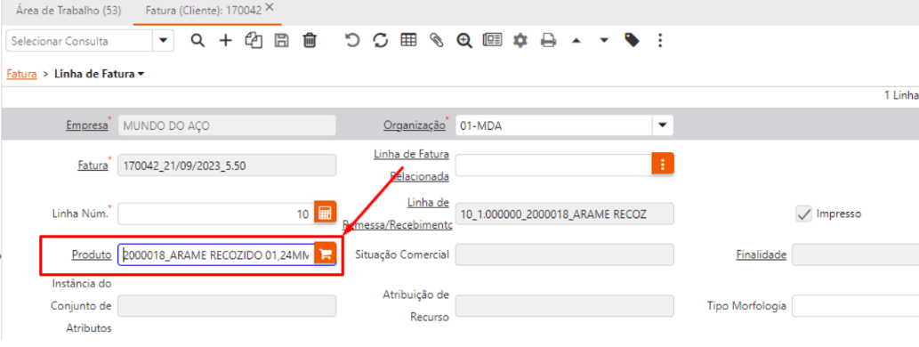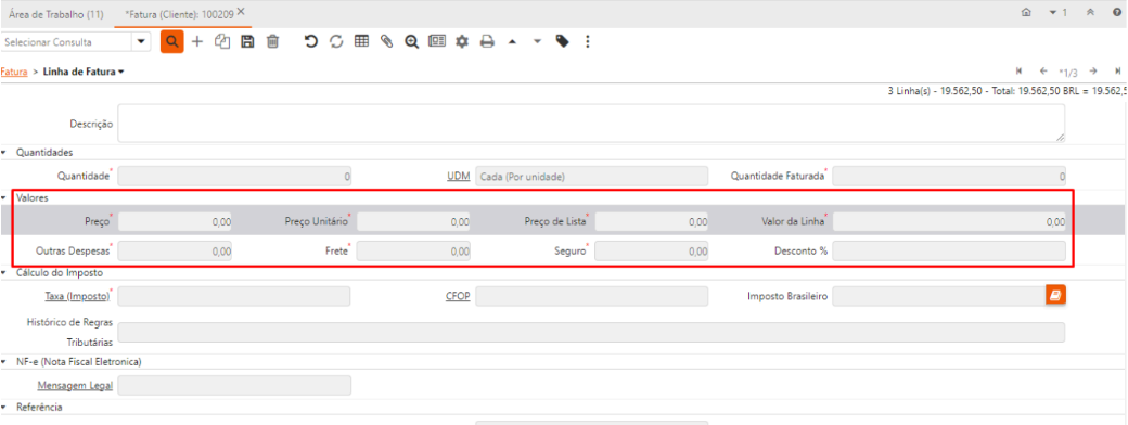 - Complete a fatura utilizando a engrenagem na barra de ferramentas.